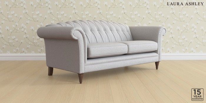 6.12.13 Buy Gloucester Button Back by Laura Ashley 3 Seater Sofa Wooton Pale Steel Grey Low Turned - Chestnut from the Next UK online shop Click here to use our accessible website