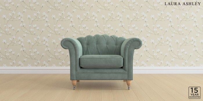 6.12.13 Buy Gloucester Button Back by Laura Ashley Armchair Ailsworth Fern Green Low Chrome Castor - Light Oak from the Next UK online shop Click here to use our accessible website