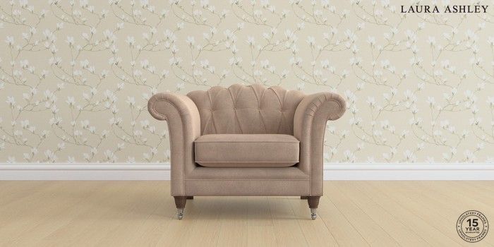 6.12.1 Buy Gloucester Button Back by Laura Ashley Armchair Ailsworth Mink Natural Low Chrome Castor - Chestnut from the Next UK online shop Click here to use our accessible website