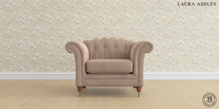 6.12.1 Buy Gloucester Button Back by Laura Ashley Armchair Ailsworth Mink Natural Low Chrome Castor - Teak from the Next UK online shop Click here to use our accessible website