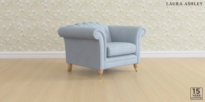 6.12.1 Buy Gloucester Button Back by Laura Ashley Armchair Ailsworth Newport Blue Low Brass Castor - Light Oak from the Next UK online shop Click here to use our accessible website