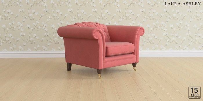 6.12.1 Buy Gloucester Button Back by Laura Ashley Armchair Ailsworth Old Rose Pink Low Brass Castor - Chestnut from the Next UK online shop Click here to use our accessible website