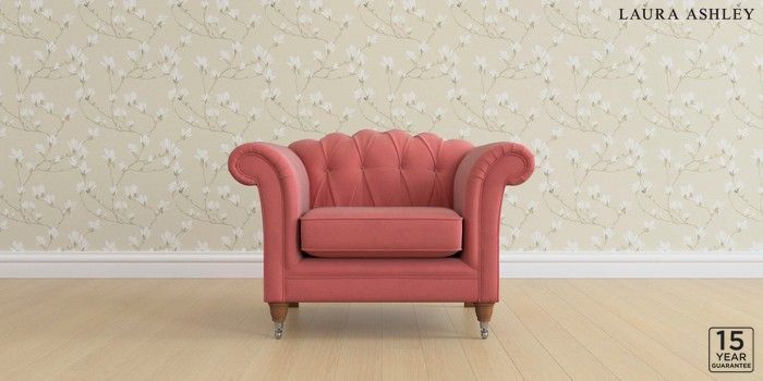 6.12.13 Buy Gloucester Button Back by Laura Ashley Armchair Ailsworth Old Rose Pink Low Chrome Castor - Teak from the Next UK online shop Click here to use our accessible website