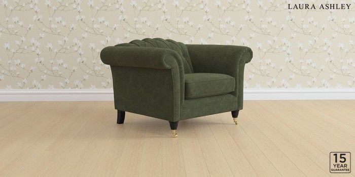 6.12.1 Buy Gloucester Button Back by Laura Ashley Armchair Alwyn Velvet Ivy Green Low Brass Castor - Black from the Next UK online shop Click here to use our accessible website