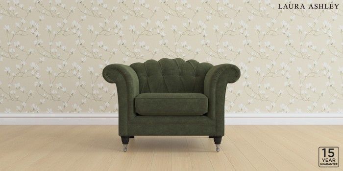 6.12.1 Buy Gloucester Button Back by Laura Ashley Armchair Alwyn Velvet Ivy Green Low Chrome Castor - Black from the Next UK online shop Click here to use our accessible website