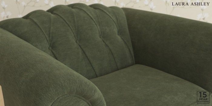 6.12.1 Buy Gloucester Button Back by Laura Ashley Armchair Alwyn Velvet Ivy Green Low Chrome Castor - Teak from the Next UK online shop Click here to use our accessible website