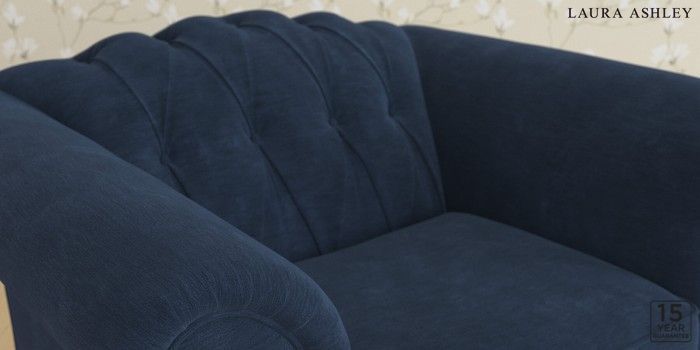6.12.1 Buy Gloucester Button Back by Laura Ashley Armchair Alwyn Velvet Midnight Navy Low Chrome Castor - Light Oak from the Next UK online shop Click here to use our accessible website
