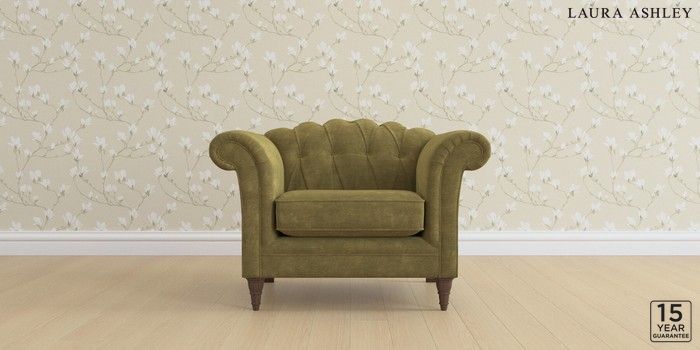 6.12.1 Buy Gloucester Button Back by Laura Ashley Armchair Alwyn Velvet Olive Green Low Turned - Chestnut from the Next UK online shop Click here to use our accessible website