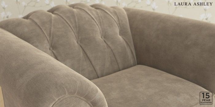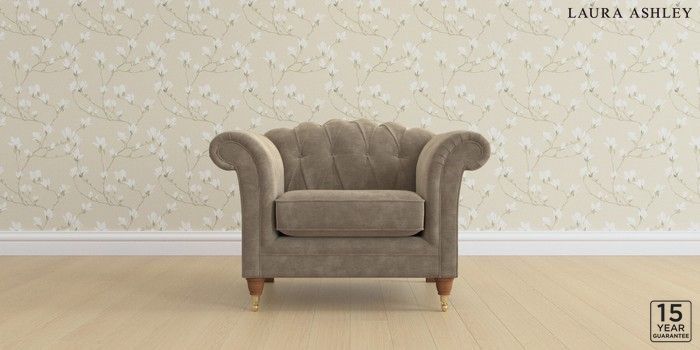 6.12.1 Buy Gloucester Button Back by Laura Ashley Armchair Alwyn Velvet Truffle Natural Low Brass Castor - Teak from the Next UK online shop Click here to use our accessible website
