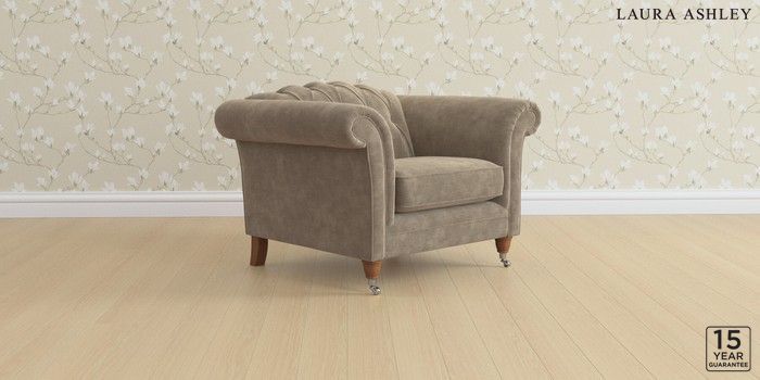 6.12.1 Buy Gloucester Button Back by Laura Ashley Armchair Alwyn Velvet Truffle Natural Low Chrome Castor - Teak from the Next UK online shop Click here to use our accessible website