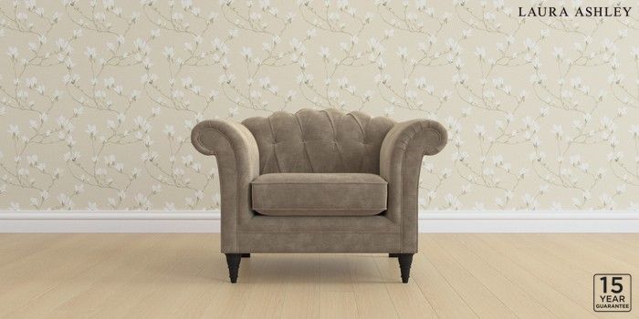 6.12.1 Buy Gloucester Button Back by Laura Ashley Armchair Alwyn Velvet Truffle Natural Low Turned - Black from the Next UK online shop Click here to use our accessible website
