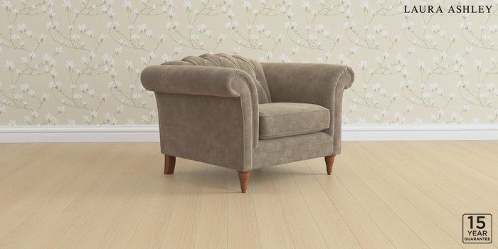 6.12.1 Buy Gloucester Button Back by Laura Ashley Armchair Alwyn Velvet Truffle Natural Low Turned - Teak from the Next UK online shop Click here to use our accessible website