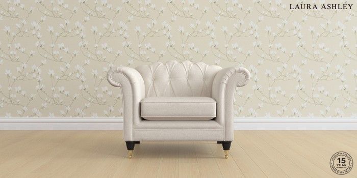 7.2.6 Buy Gloucester Button Back by Laura Ashley Armchair Anneliese Oyster Natural Low Brass Castor - Black from the Next UK online shop Click here to use our accessible website