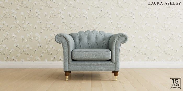 6.12.1 Buy Gloucester Button Back by Laura Ashley Armchair Anneliese Seaspray Blue Low Brass Castor - Teak from the Next UK online shop Click here to use our accessible website