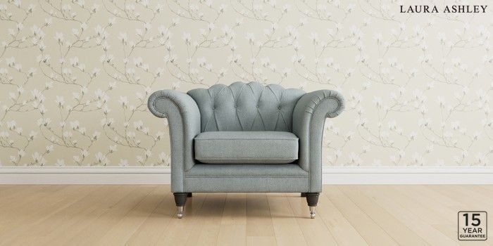 6.12.1 Buy Gloucester Button Back by Laura Ashley Armchair Anneliese Seaspray Blue Low Chrome Castor - Black from the Next UK online shop Click here to use our accessible website