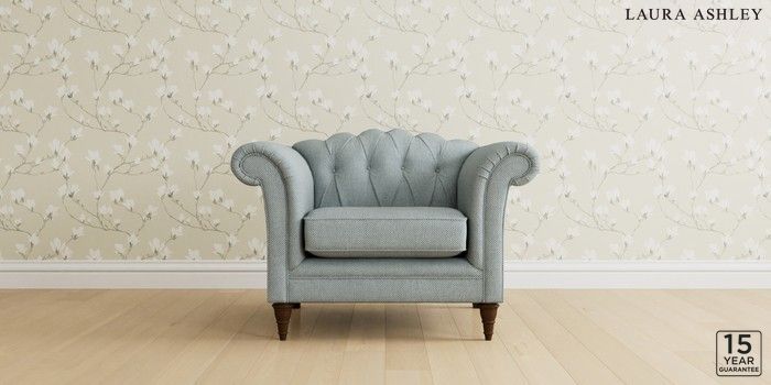 6.12.1 Buy Gloucester Button Back by Laura Ashley Armchair Anneliese Seaspray Blue Low Turned - Chestnut from the Next UK online shop Click here to use our accessible website