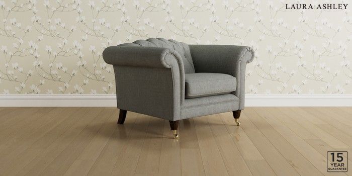 6.12.1 Buy Gloucester Button Back by Laura Ashley Armchair Anneliese Steel Grey Low Brass Castor - Chestnut from the Next UK online shop Click here to use our accessible website