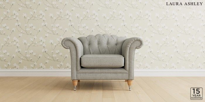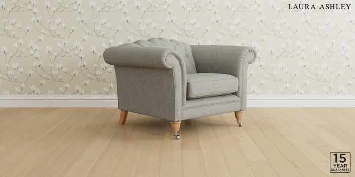 6.12.1 Buy Gloucester Button Back by Laura Ashley Armchair Anneliese Steel Grey Low Chrome Castor - Light Oak from the Next UK online shop Click here to use our accessible website