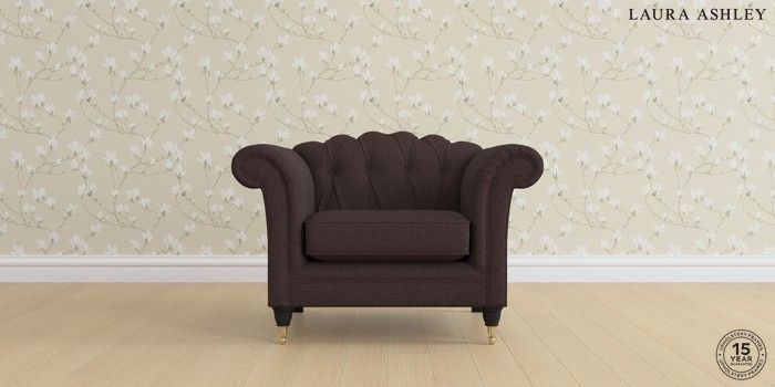 7.0.3 Buy Gloucester Button Back by Laura Ashley Armchair Bainton Chocolate Brown Low Brass Castor - Black from the Next UK online shop Click here to use our accessible website