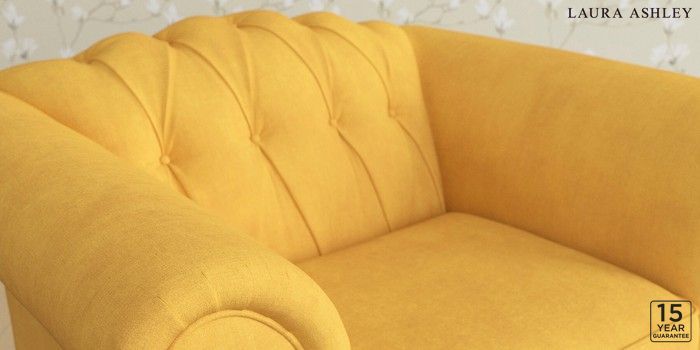 6.12.1 Buy Gloucester Button Back by Laura Ashley Armchair Bainton Ochre Yellow Low Brass Castor - Light Oak from the Next UK online shop Click here to use our accessible website