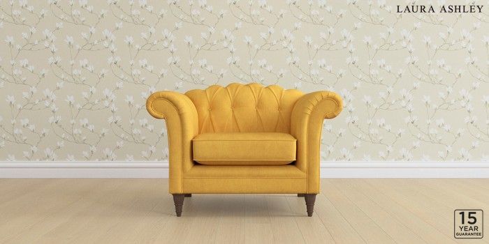6.12.1 Buy Gloucester Button Back by Laura Ashley Armchair Bainton Ochre Yellow Low Turned - Chestnut from the Next UK online shop Click here to use our accessible website