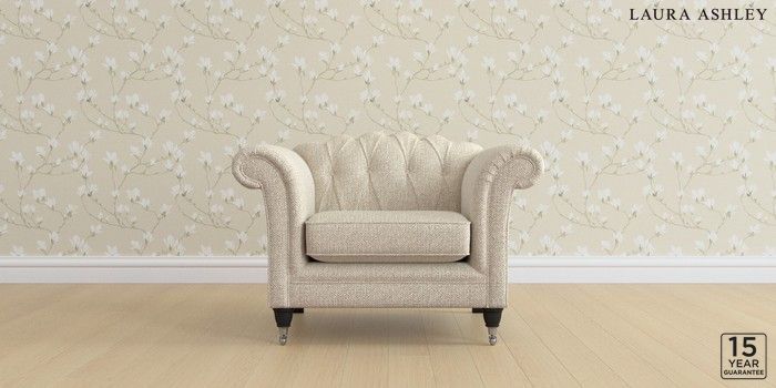 6.12.13 Buy Gloucester Button Back by Laura Ashley Armchair Borwick Natural Low Chrome Castor - Black from the Next UK online shop Click here to use our accessible website