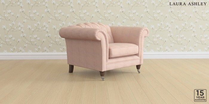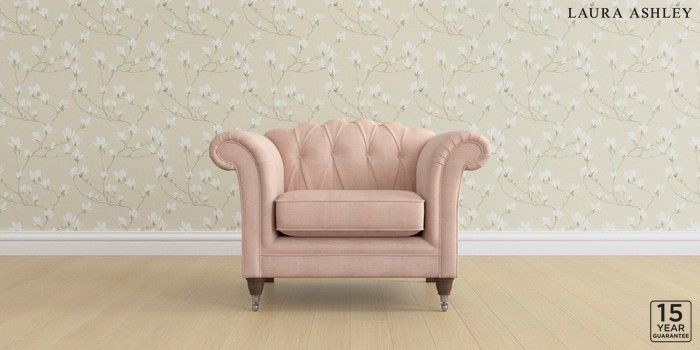 6.12.13 Buy Gloucester Button Back by Laura Ashley Armchair Edwin Chenille Blush Pink Low Chrome Castor - Chestnut from the Next UK online shop Click here to use our accessible website