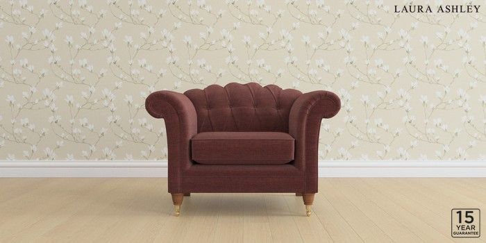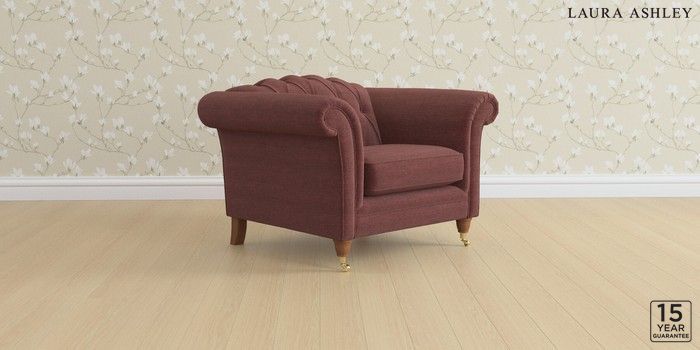 6.12.1 Buy Gloucester Button Back by Laura Ashley Armchair Edwin Chenille Burgundy Red Low Brass Castor - Teak from the Next UK online shop Click here to use our accessible website
