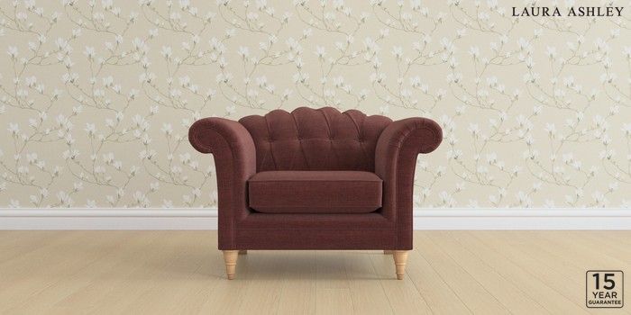 6.12.13 Buy Gloucester Button Back by Laura Ashley Armchair Edwin Chenille Burgundy Red Low Turned - Light Oak from the Next UK online shop Click here to use our accessible website