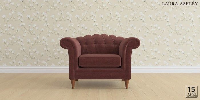 6.12.13 Buy Gloucester Button Back by Laura Ashley Armchair Edwin Chenille Burgundy Red Low Turned - Teak from the Next UK online shop Click here to use our accessible website