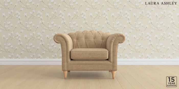 6.12.1 Buy Gloucester Button Back by Laura Ashley Armchair Edwin Chenille Gold Natural Low Turned - Light Oak from the Next UK online shop Click here to use our accessible website