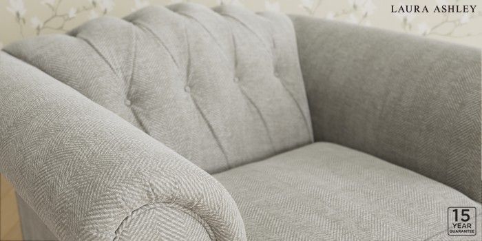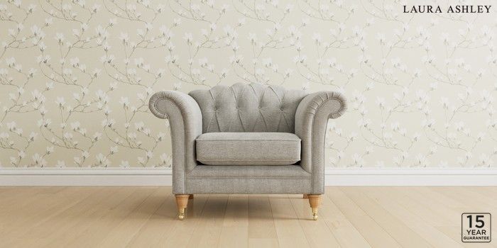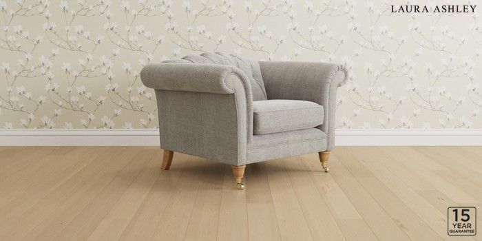 6.12.1 Buy Gloucester Button Back by Laura Ashley Armchair Edwin Chenille Silver Grey Low Brass Castor - Light Oak from the Next UK online shop Click here to use our accessible website