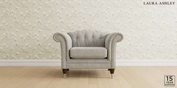 6.12.1 Buy Gloucester Button Back by Laura Ashley Armchair Edwin Chenille Silver Grey Low Chrome Castor - Chestnut from the Next UK online shop Click here to use our accessible website