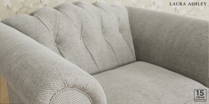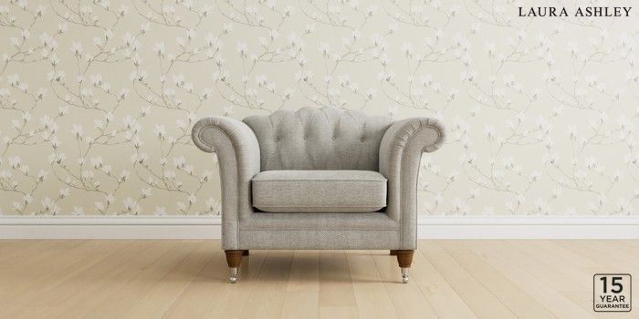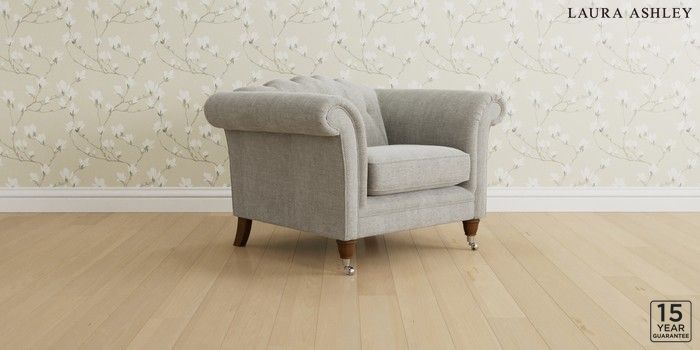 6.12.1 Buy Gloucester Button Back by Laura Ashley Armchair Edwin Chenille Silver Grey Low Chrome Castor - Teak from the Next UK online shop Click here to use our accessible website