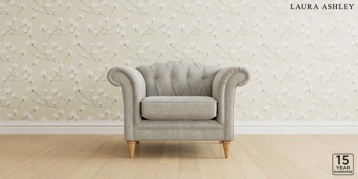 6.12.1 Buy Gloucester Button Back by Laura Ashley Armchair Edwin Chenille Silver Grey Low Turned - Light Oak from the Next UK online shop Click here to use our accessible website