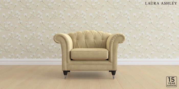 6.12.13 Buy Gloucester Button Back by Laura Ashley Armchair Edwin Chenille Truffle Natural Low Chrome Castor - Black from the Next UK online shop Click here to use our accessible website