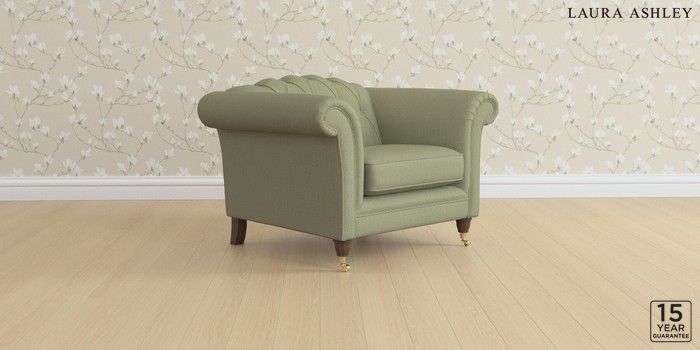 6.12.1 Buy Gloucester Button Back by Laura Ashley Armchair Edwin Herringbone Hedgerow Green Low Brass Castor - Chestnut from the Next UK online shop Click here to use our accessible website