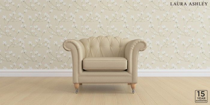 6.12.1 Buy Gloucester Button Back by Laura Ashley Armchair Edwin Herringbone Natural Low Chrome Castor - Light Oak from the Next UK online shop Click here to use our accessible website