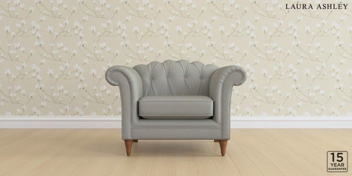 6.12.1 Buy Gloucester Button Back by Laura Ashley Armchair Edwin Herringbone Pale Steel Grey Low Turned - Teak from the Next UK online shop Click here to use our accessible website