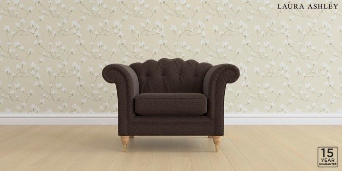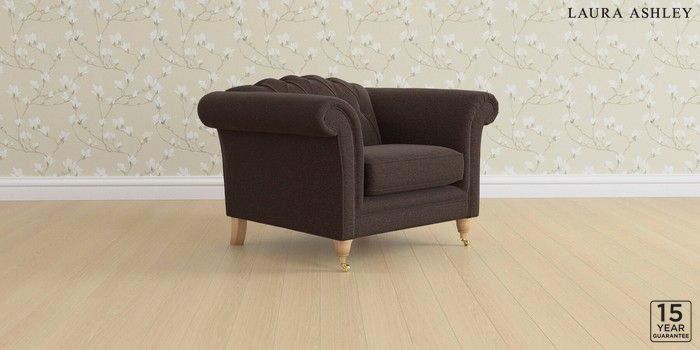 6.12.1 Buy Gloucester Button Back by Laura Ashley Armchair Harley Chestnut Brown Low Brass Castor - Light Oak from the Next UK online shop Click here to use our accessible website