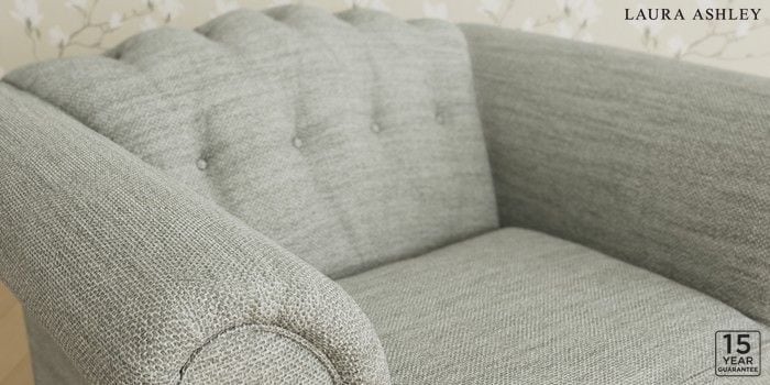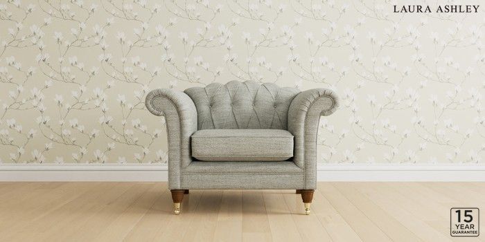 6.12.1 Buy Gloucester Button Back by Laura Ashley Armchair Harley Dove Grey Low Brass Castor - Teak from the Next UK online shop Click here to use our accessible website