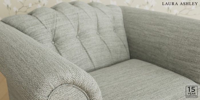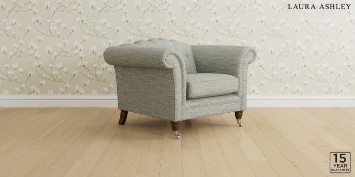 6.12.13 Buy Gloucester Button Back by Laura Ashley Armchair Harley Dove Grey Low Chrome Castor - Teak from the Next UK online shop Click here to use our accessible website