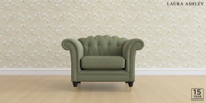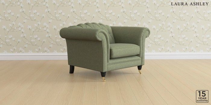 6.12.1 Buy Gloucester Button Back by Laura Ashley Armchair Harley Moss Green Low Brass Castor - Black from the Next UK online shop Click here to use our accessible website