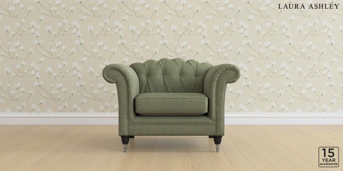 6.12.1 Buy Gloucester Button Back by Laura Ashley Armchair Harley Moss Green Low Chrome Castor - Black from the Next UK online shop Click here to use our accessible website