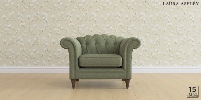 6.12.1 Buy Gloucester Button Back by Laura Ashley Armchair Harley Moss Green Low Turned - Chestnut from the Next UK online shop Click here to use our accessible website