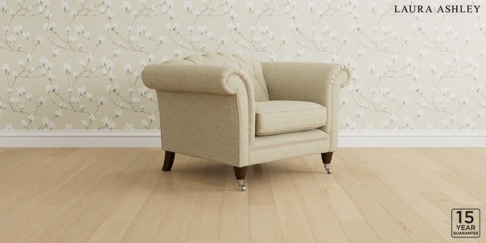 6.12.1 Buy Gloucester Button Back by Laura Ashley Armchair Harley Natural Low Chrome Castor - Chestnut from the Next UK online shop Click here to use our accessible website