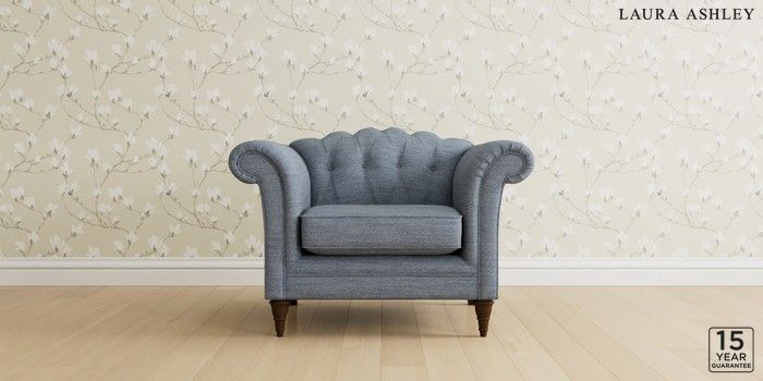 6.12.1 Buy Gloucester Button Back by Laura Ashley Armchair Harley Seaspray Blue Low Turned - Chestnut from the Next UK online shop Click here to use our accessible website