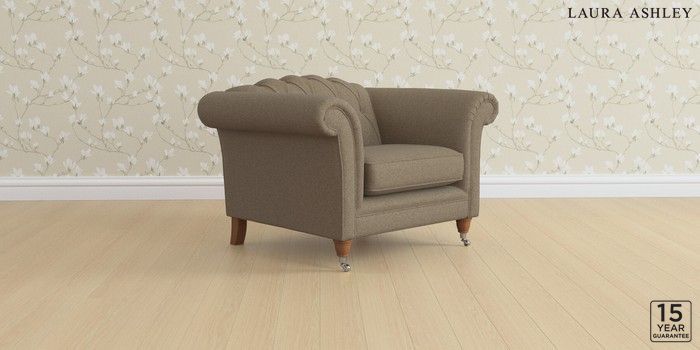 6.12.1 Buy Gloucester Button Back by Laura Ashley Armchair Harley Truffle Natural Low Chrome Castor - Teak from the Next UK online shop Click here to use our accessible website
