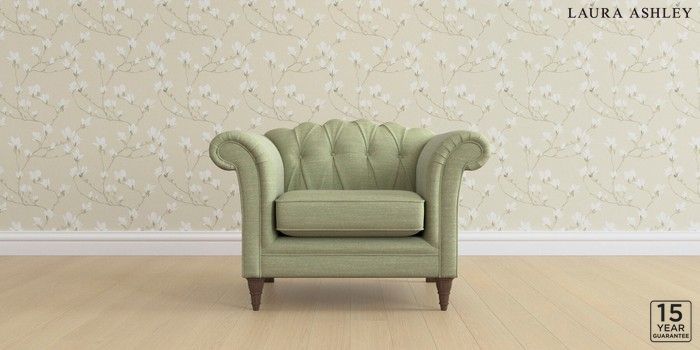 6.12.13 Buy Gloucester Button Back by Laura Ashley Armchair Kinsham Hedgerow Green Low Turned - Chestnut from the Next UK online shop Click here to use our accessible website