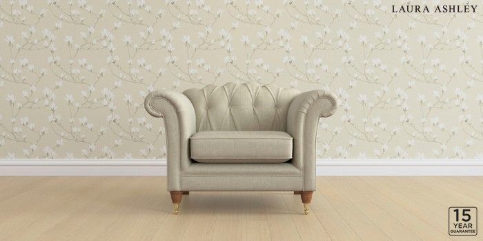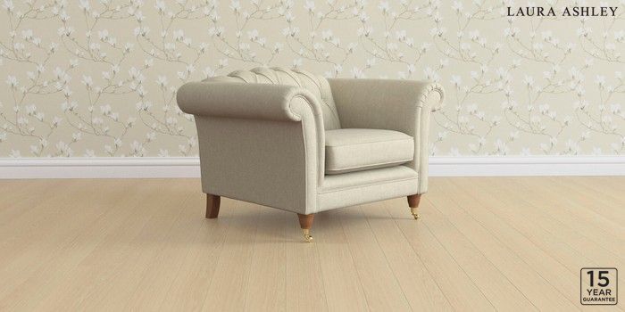 6.12.1 Buy Gloucester Button Back by Laura Ashley Armchair Kinsham Natural Low Brass Castor - Teak from the Next UK online shop Click here to use our accessible website